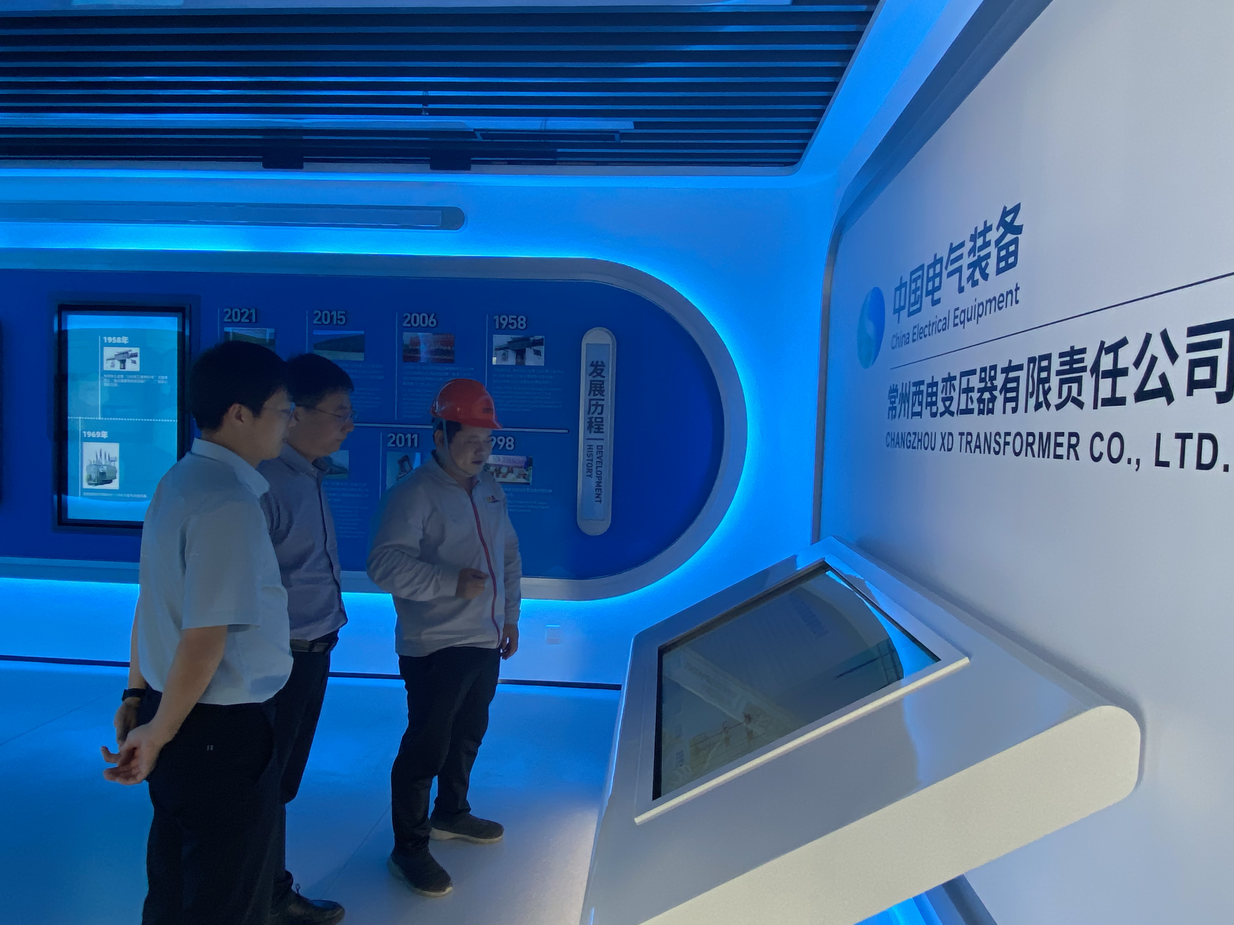 除了高校走访,调研小组还积极开展了访企拓岗活动,赴常州西电变压器有限责任公司进行了沟通交流。常州西电变压器有限责任公司隶于中国西电集团,公司主要生产110 kV-1000 kV高压、超(特)高压交流变压器、±500kV、±800kV换流变压器及核电站用巨型变压器等,年生产能力达6000万kVA,是国家定点生产变压器类产品的国有控股公司,国家大型企业,国家高新技术企业,全国变压器行业十强企业,江苏省认定企业技术中心。调研小组与企业负责人进行了深入交流和沟通,参观了企业特高压变压器生产线,了解了企业的用人需求和行业发展趋势,明确了小黄书