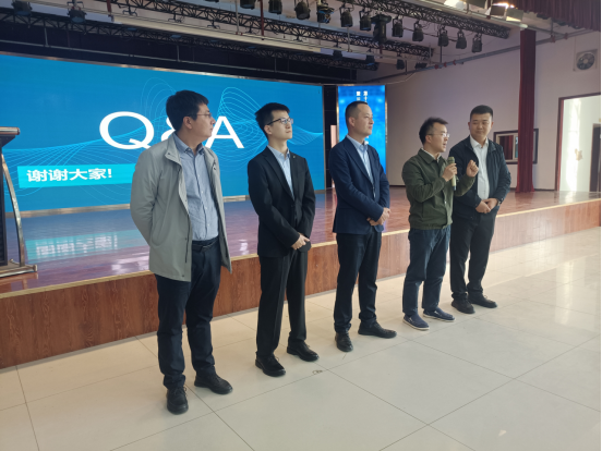 在有奖互动环节中袁红彬先生(右二)回答同学们的问题