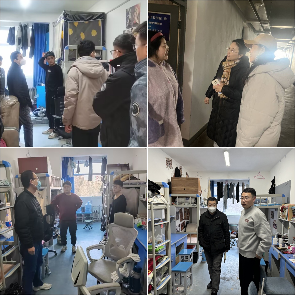 领导班子成员带队开展寒假前安全大检查,深入到办公室、工作室、实验室、学生宿舍等区域进行全面细致的检查。在检查过程中,对学生宿舍和研究生工作室等重大区域存在的卫生情况、用电情况做出了指导和建议,并提醒同学们妥善保管个人贵重物品,离校前关好电源及门窗,并对发现的隐患及时排除、整改;同时与在场师生和将要离校回家的同学进行了亲切的交谈,鼓励留校同学珍惜留校时间加强学习、开展科研,叮嘱回家同学提高安全意识,注意出行安全。