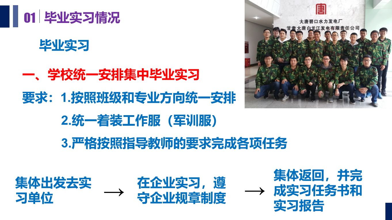 会上杨维满老师对毕业实习目的、意义做了简要说明,对毕业实习过程中涉及到的实习时间与地点、实习单位、着装问题、实习任务书、实习报告撰写要求及安全问题等关键内容结合PPT做了重点讲述,并强调大家要高度重视毕业实习工作,充分认识毕业实习的重要性,严格遵守小黄书