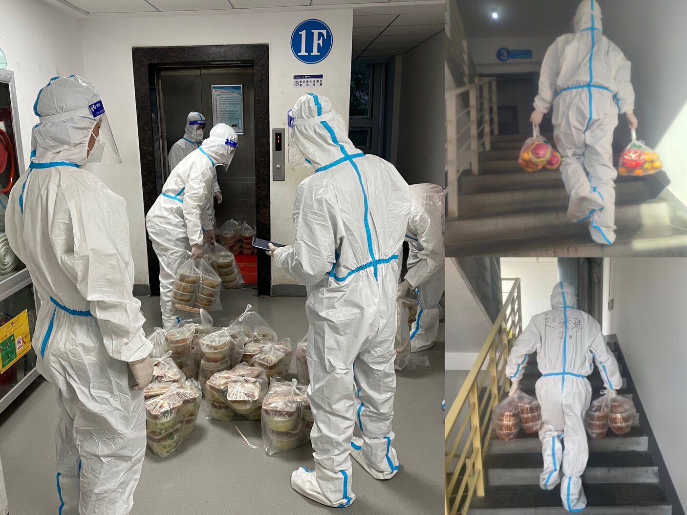 “兵马未动,粮草先行”。作为校园抗疫团队中最青春的力量,用坚守与奉献筑牢校园战疫钢铁长城。在防疫物资配送中满负荷运转,严格落实人、物、环境同防要求,凌晨将一箱箱防疫物资、口罩搬运到学生公寓;每天7点开始做好一日三餐的送餐准备,有序接驳、分层转运,确保第一时间将热饭送到学生手中;毅然承担起坚守楼层的重任,直面风险,化身可爱的“大白”和校园“摆渡人”,做好学生公寓楼垃圾清理、环境消杀和生活必需品发放、提供热水、设备检查维修等等后勤服务,确保学生生活有保障,公寓环境安全稳定;于细微处显担当,落实落细网格化管理机制,通过印制“核酸检测序号”,核酸检测“分楼层分宿舍”有序进行,确保不漏一人;一间一间宿舍核查,绘制学生分布平面图;手拿肩扛,将一袋袋餐盒、水果送达学生;建立《小黄书