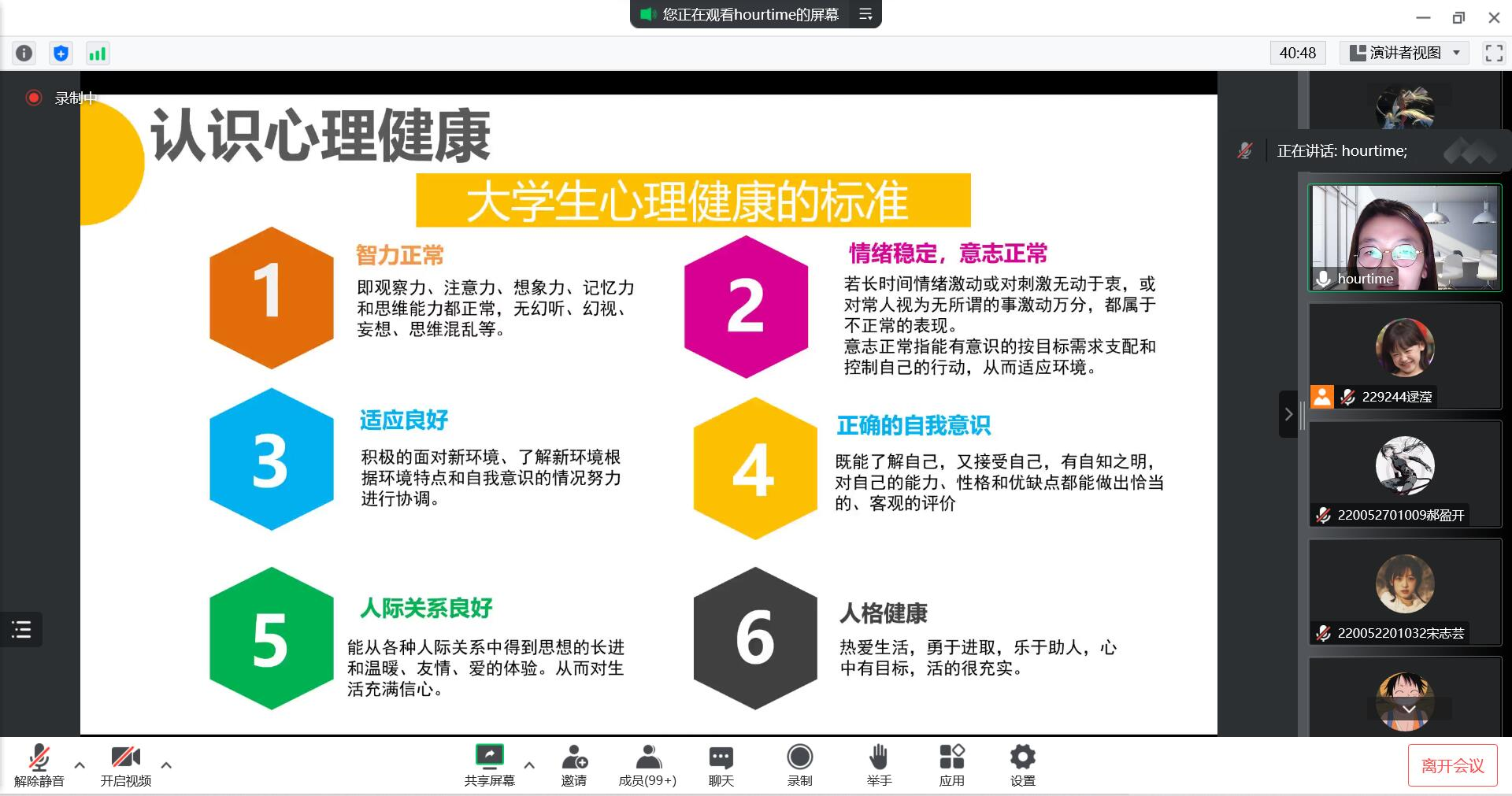 通过这次讲座,同学们大受启发,受益良多。我院在疫情当下积极开展心理健康讲座,为我院大学生带来一次心理的洗礼。后将继续组织相关讲座,做好学生的心理健康工作,促进学生健康心理和健全人格的发展。(撰稿:逯滢;终审:王玲)