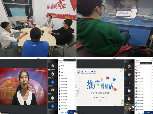团委通过线上线下相结合的方式在社区党团活动室开展了“推广普通话,喜迎二十大”活动。活动中同学们共同观看了普通话宣传推广资料,了解国家通用语言文字在服务铸牢中华民族共同体意识、助力乡村振兴中的重要作用。此次活动结束后多位同学演讲发言,其中电气工程及其自动化二班党敏同学为大家分享了在乡村推普活动中自己的感悟与收获。