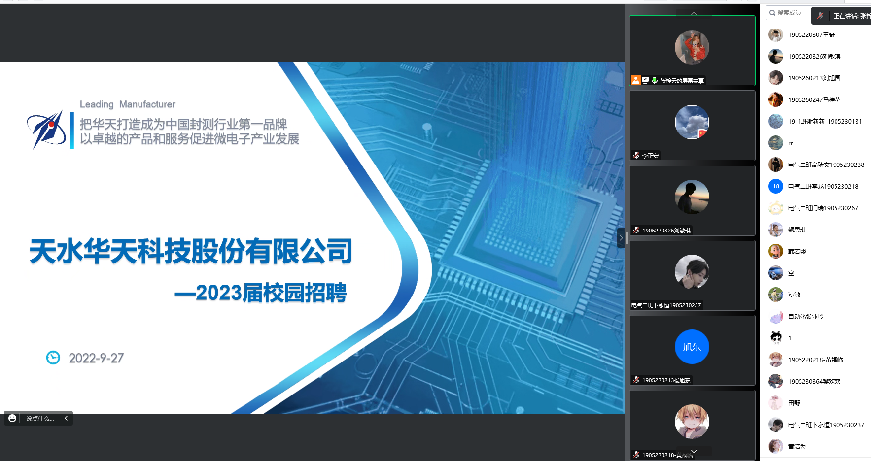 邀请海康威视、天水华天科技等就业基地单位在腾讯会议平台举行线上就业宣讲会。