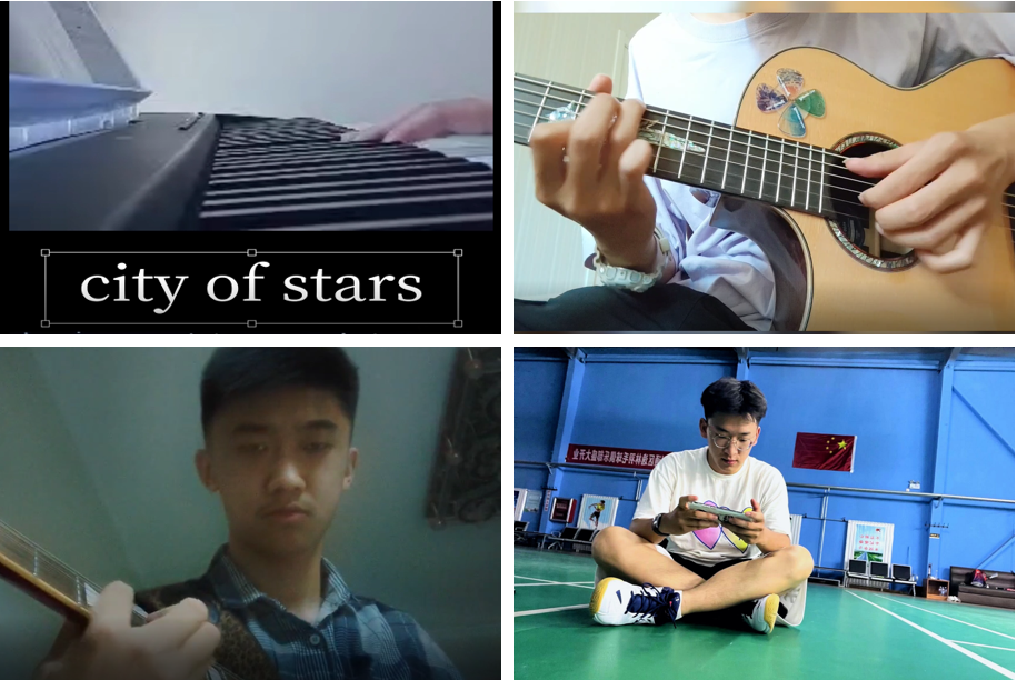 开展美术、书法、主题征文、短视频、主题歌曲等创作活动, 比赛借助线上平台进行。音乐、舞蹈、摄影、画画......小小的才艺配上字幕和欢快的音乐,同学们丰富的居家生活和多才多艺不禁让全体师生眼前一亮。