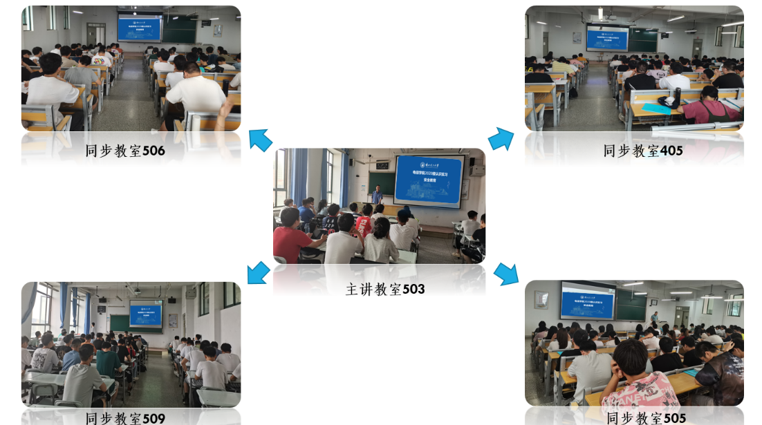 彭家坪校区蔚云楼的5间智慧教室为20级学生同步直播了主题为《工业生产与安全》的教育讲座,讲座由自动化系主任蒋栋年副教授主持,惠永永老师、魏小源老师、李亚洁老师,20级的自动化、电气工程及其自动化、电子信息科学与技术、机器人工程专业的全体学生参加了本次讲座。