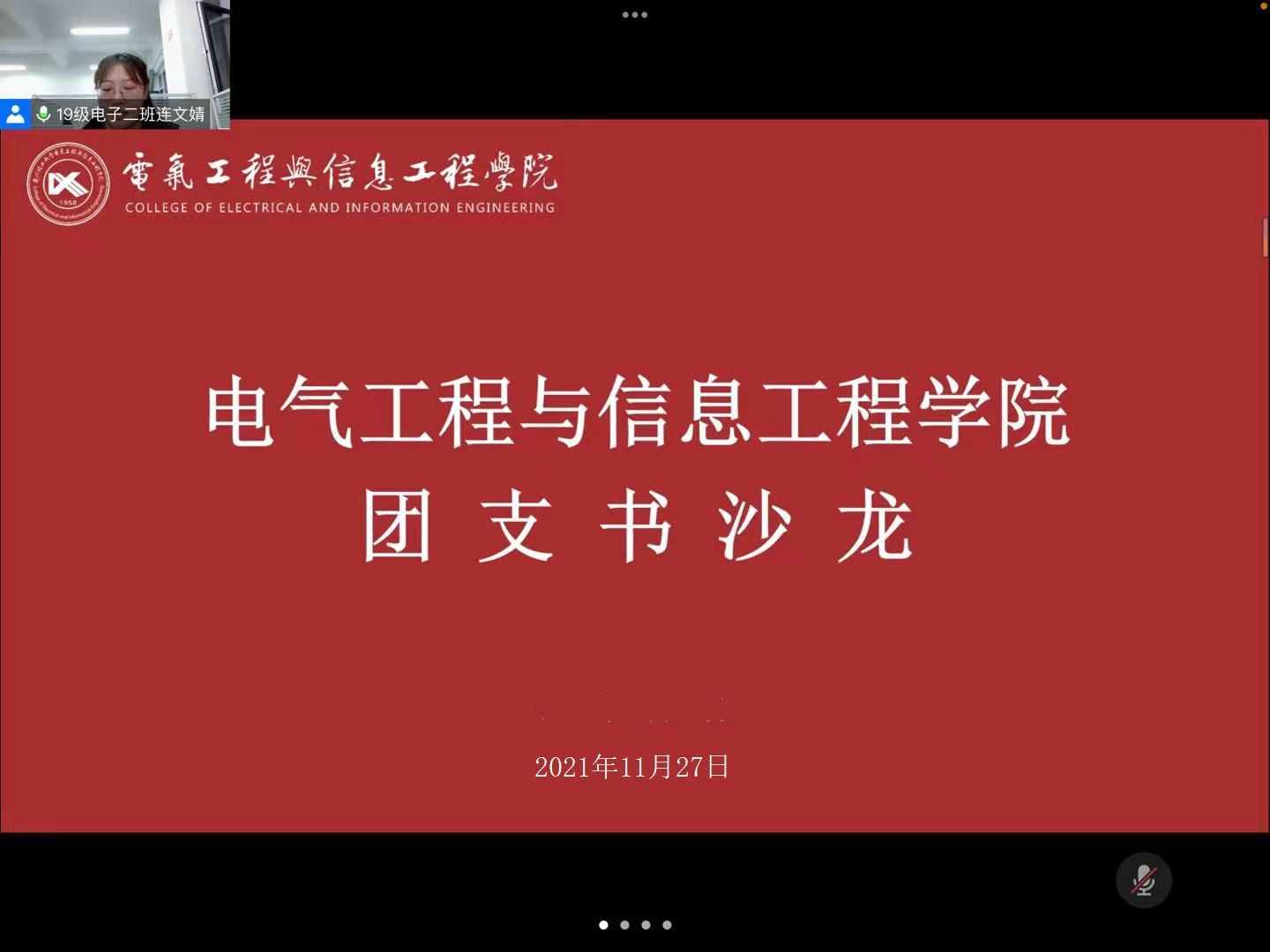 2019级电子信息科学与技术专业2班团支部书记连文婧同学,进行交流分享。小黄书