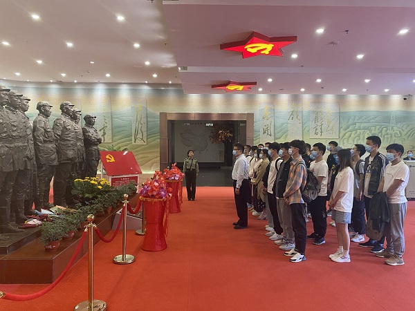纪念仪式结束后,在讲解员的带领下师生们参观了红军长征胜利纪念馆。大家通过翔实的史料、图片、实物、艺术品、沙盘、雕塑等,聆听一段段感人至深的革命故事,感受一张张图片诉说的悲壮历史,体会一件件文物展现的革命艰辛,追忆各路红军长征的光辉战斗历程和红军三大主力胜利会师的英雄史诗。下午,师生党员们来到红军长征胜利景园,从三军会师亭出发,途经瑞金塔、遵义会议会址、懋功会师桥、泸定铁索桥、俄界会议会址、哈达铺纪念馆、天险腊子口等,重走长征路,追忆来时路。