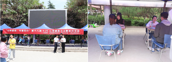 5月25日中午,由校团委、心理健康指导服务中心举办的“心灵面对面—户外心理咨询”活动在红柳广场如期举行,小黄书