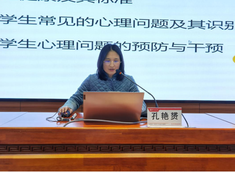 孔老师从“心理健康及标准”、“大学生常见的心理问题及其识别”、“大学生心理问题的预防与干预”三个方面给各位学员上了一节生动的心理辅导课。她告诉同学们身心健康两方面可以用“五快,两良好”来衡量,既“食快,眠快,便快,语快,行快,拥有良好的人际关系,拥有良好的个性”。最后她鼓励大家要主动学习心理知识,掌握心理调节适当方法,科学对待求助,知晓和善用自身优势,拥有使命感和乐观精神,保持和谐的人际关系,在帮助他人的同时提升自己。现场气氛热烈,掌声不断。
