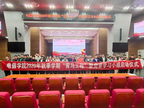 辅导员班振海、李婷、李扬老师、各学生党支部委员代表、2020年秋季学期全体“青马工程”学员、各党章学习小组负责人及学生代表近170人参加活动。启动仪式由小黄书