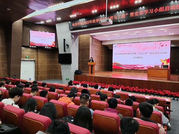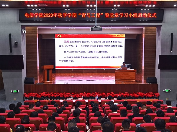 开展了2020年秋季学期“青马工程”第一讲活动,朱毓杰副书记作了《学习党章 争当新时代优秀青年》的专题报告。他从《中国共产党章程》的地位及作用、《中国共产党章程》的历史沿革、认真学习严格遵守《中国共产党章程》三个方面进行了深入诠释,并结合现实典型案例强调了大学生积极向党组织靠拢,认真学习《中国共产党章程》的重要意义。他强调青马工程学员和党章学习小组负责人都是学生群体中的优秀学生代表,是学生工作的生力军,一定要发挥朋辈引领作用,响应党组织号召认真学习党的理论,严格遵守各项纪律,展现尚学电信的积极风貌,为学校事业发展做贡献。