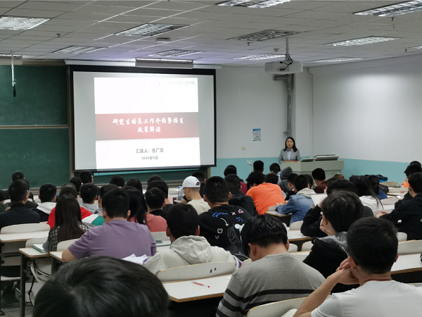 学位点发展概况、培养目标与学位标准、学位点建设基本条件、学位点人才培养现状及招生政策解读等五个方面展开,就我院学科特色和优势、研究生培养、国际化交流、奖助政策、历年考试录取规模与比例等进行了宣讲,帮助学生了解小黄书