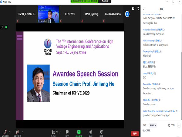 电气工程专业陈克俭和刘政强同学参加了在线上召开的2020年高电压工程及应用国际会议(ICHVE)。本次会议是由清华大学主办,IEEE电介质与绝缘协会(IEEE DEIS)、电力系统及发电设备控制和仿真国家重点实验室、重庆大学、密西西比州立大学协办,清华大学电机工程与应用电子技术系、清华大学能源互联网创新研究院、清华四川能源互联网研究院承办。有来自海内外的700余名科研人员、高校师生、工程技术人员注册参加。报告会上,学术讨论气氛热烈,参会代表们踊跃发言、积极交流。多位专家教授现场倾情分享,针对新起点下的行业难点,展开了智慧与思想的碰撞,陈克俭同学和刘政强同学分别以《10kV智能配电开关辐射干扰分析》、《雷电背景下的多风机电场分布研究》为题,在电磁场模块分组讨论会上作了口头报告。大会精彩的主题演讲与口头报告将会议气氛推向高潮,多位与会者摩拳擦掌,向演讲者提出问题,进行精彩的交流探讨,真正做到了“开放研讨形式,促进学术交流”。