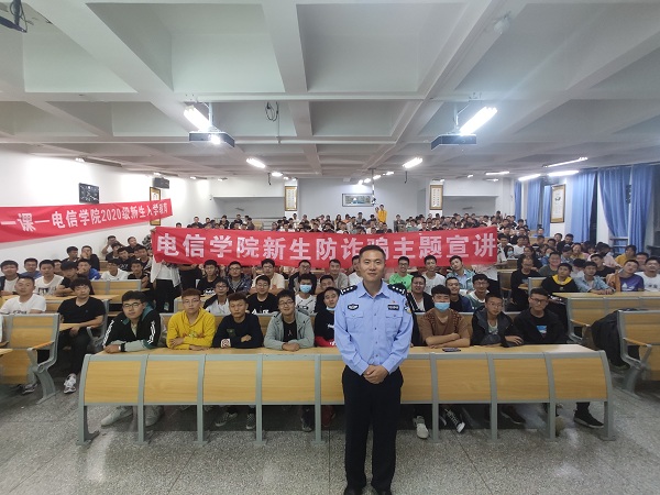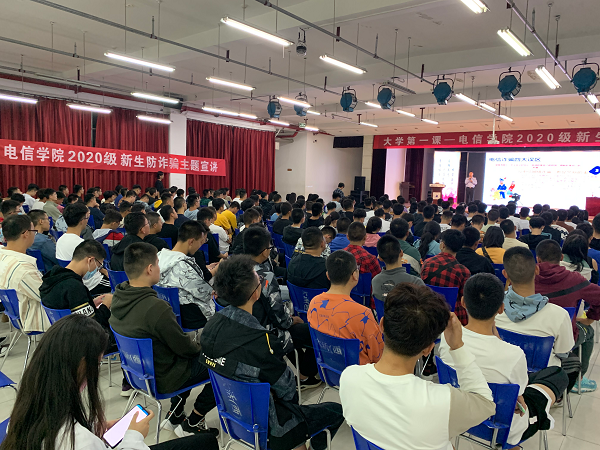 2020级的新生们说明了电信诈骗的总体形势:近期电信诈骗案件频发,陆续出现了针对学生的新型的、迷惑性更强的电信诈骗手段,给同学们切身利益造成了严重威胁。之后,朱警官结合多个生动的典型案例,帮助学生认清了电信诈骗犯罪的严重性和危害性,有效提高了学生对电信诈骗犯罪的识别和应对能力,增强了学生的警惕性和防范意识。