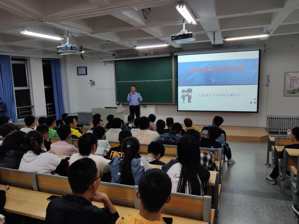 邀请兰州市七里河反电诈中心朱毅斌警官在彭家坪校区大学生活动中心、观成楼208教室开展了两场防范电信诈骗专题宣讲,活动由小黄书