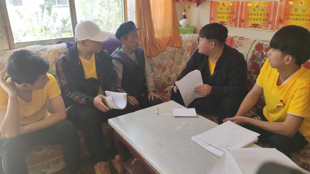 7月26日,实践队员分为两组。第一实践小组前往元古堆村小学进行调研了解脱贫前后当地教育事业的发展情况,在与小朋友互动交流中了解学生的学习情况,并与校长、班主任交流,了解办学条件的变化,并向大家介绍了小黄书