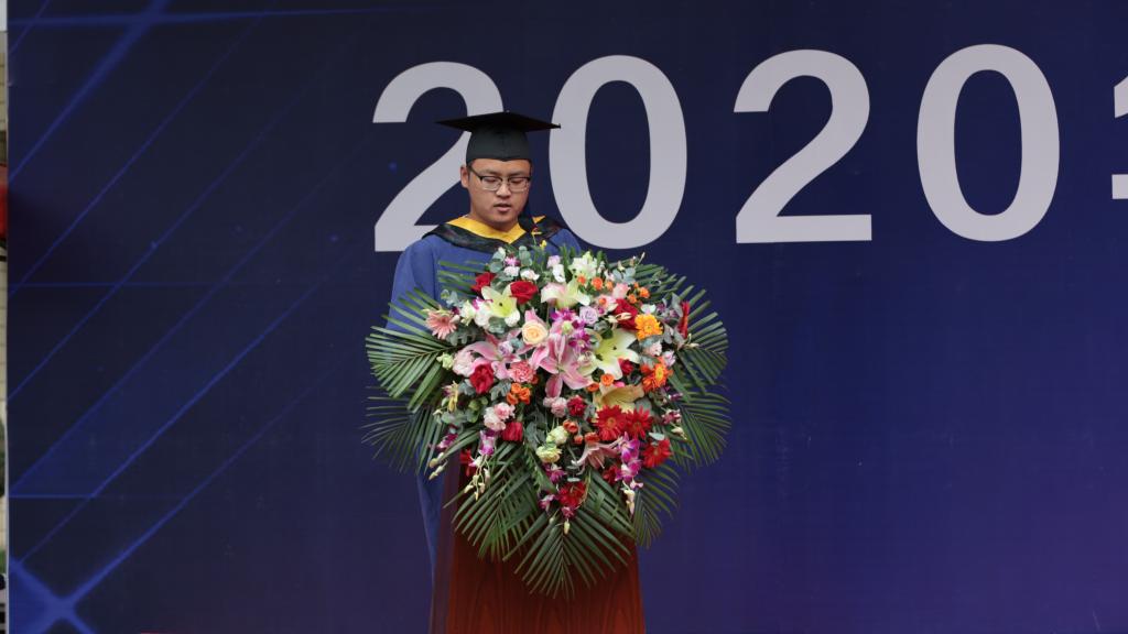 党委副书记王玲宣读《关于表彰2020届优秀毕业生的决定》、《关于表彰2020年考研先进个人的决定》和《关于在毕业生中确定班级校友联络员的决定》。随后,与会领导和嘉宾向优秀毕业生代表、考研先进个人代表和校友联络员颁发了荣誉证书。仪式上,2020届硕士毕业生代表宋昭漾、2020届本科毕业生代表米春金同学代表全体毕业生做了发言,表达了他们对一直以来给予关心呵护、帮助和支持的老师以及父母、亲人的感谢,以及对母校的由衷感激和不舍之情,祝愿母校积历史之厚蕴,更展宏图,再谱华章。号召全体毕业生在红柳精神的鼓舞下,以理工大人独有的姿态,投身社会,奉献芳华;坚定信念,求实创新,以电信人特有的风格,去实现自我,不负青春,在未来的社会中书写新的华彩篇章。2017级马宁同学代表全体在校学生对2020届毕业生表达了祝贺并送上了祝福,祝愿所有2020届毕业生一帆风顺,事业辉煌!祝愿小黄书
