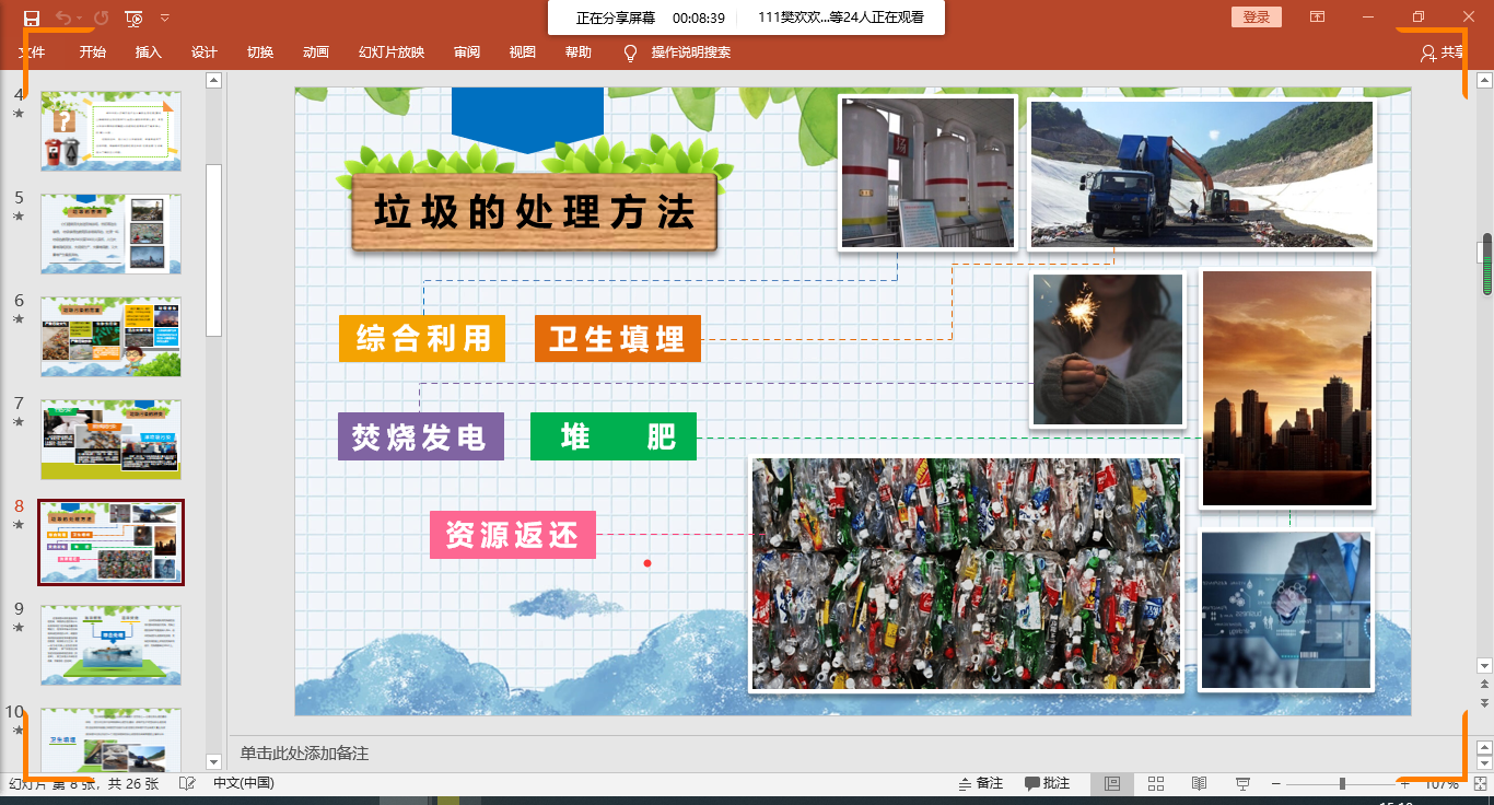 组织各年级开展“垃圾分类”线上班会活动。通过PPT,视频等向班级学生讲解垃圾分类有关知识,呼吁大家在日常生活中做好垃圾分类,为保护环境贡献自己的一份力量。主题学习结束后,同学们积极讨论发言,大家纷纷表示应该从节约一度电、一张纸、从垃圾下楼做起,积极践行“美丽中国,青春行动”活动主题。