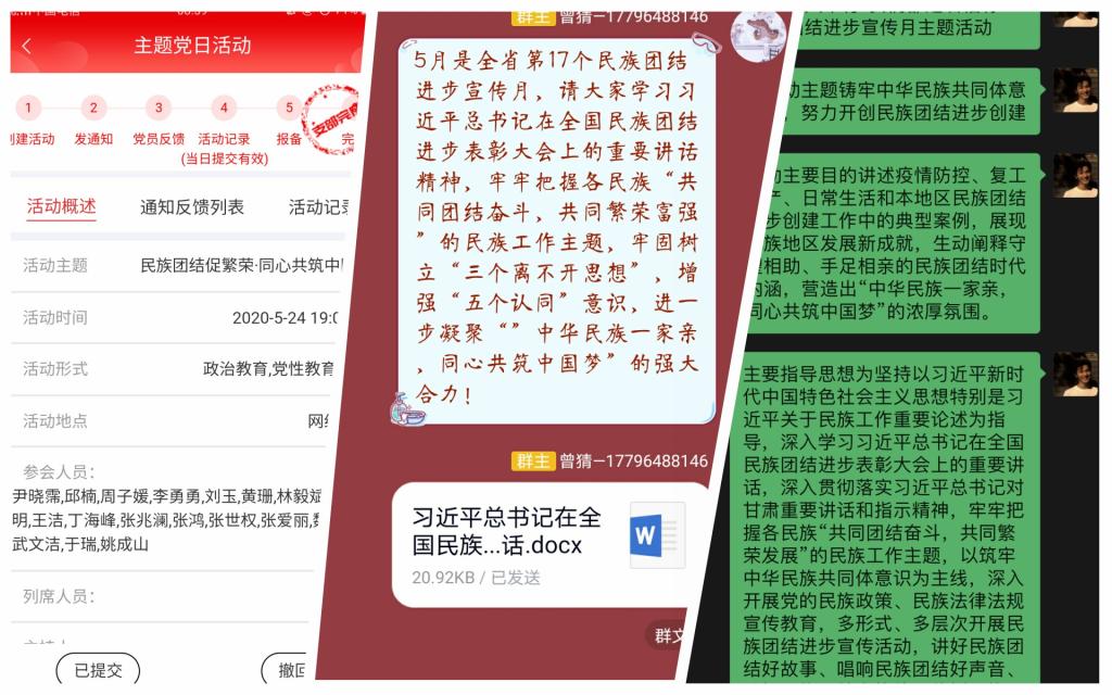 采用灵活形式开展了丰富多彩的线上主题活动。通过号召各党支部、团支部和班级积极组织开展党日活动、团日活动和主题班会,引导师生深入学习贯彻习近平总书记在全国民族团结进步表彰大会上的重要讲话,进一步提升了小黄书