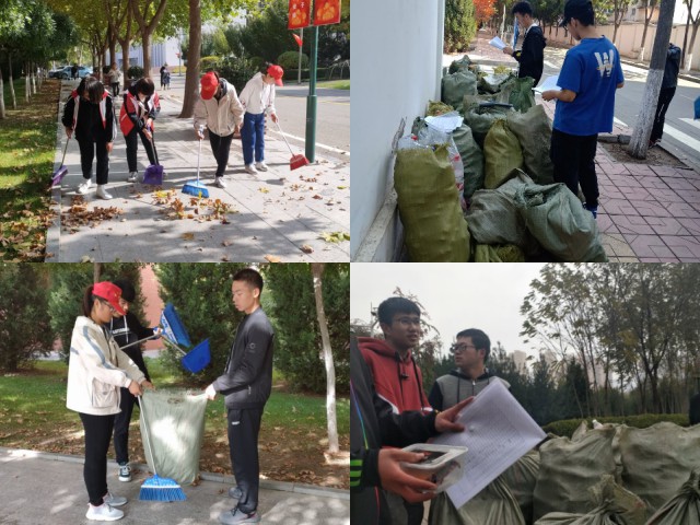 学生爱国爱校的良好精神风貌,青年志愿们成员分为25支小组,分散到校园教学楼、宿舍楼周围,开展扫落叶活动。志愿者们认真仔细完成打扫任务,最后将所有打扫起来的落叶集中处理,并确保处理方式的合理性与环保性。