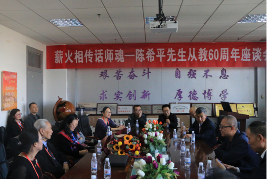 会议室举办了“薪火相传话师魂——陈希平先生从教60周年座谈会”。座谈会由陈伟副院长主持。来自全国各地的陈希平教授曾经的学生和小黄书