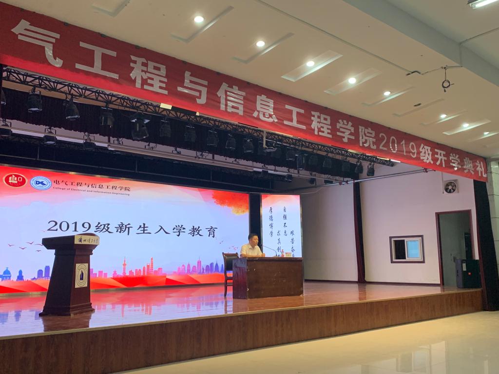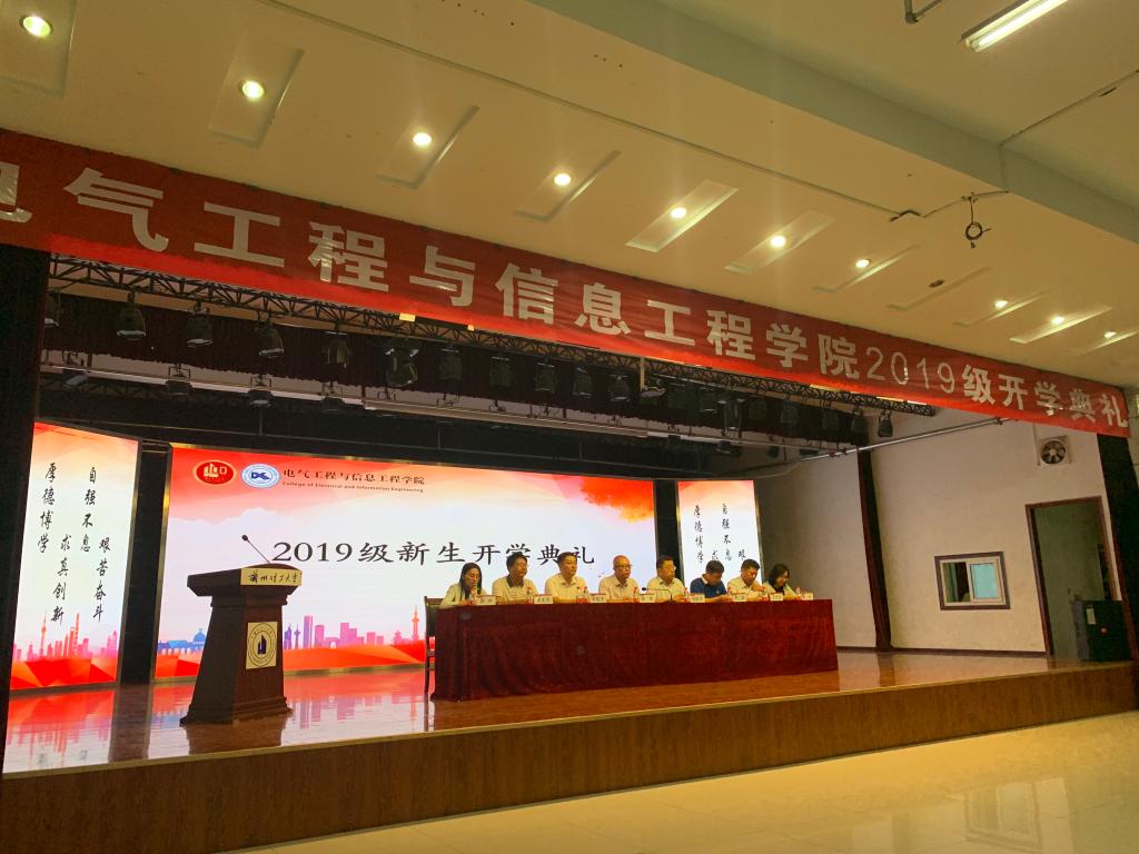 党委书记杨新华教授、副院长陈伟教授、副院长李二超副教授、党委副书记朱毓杰老师、自动化系主任王志文教授、电气系副主任张宏亮老师、电子信息工程系主任黄玲副教授、各年级辅导员老师及2019级584名新生参加了开学典礼。典礼由陈冲老师主持。