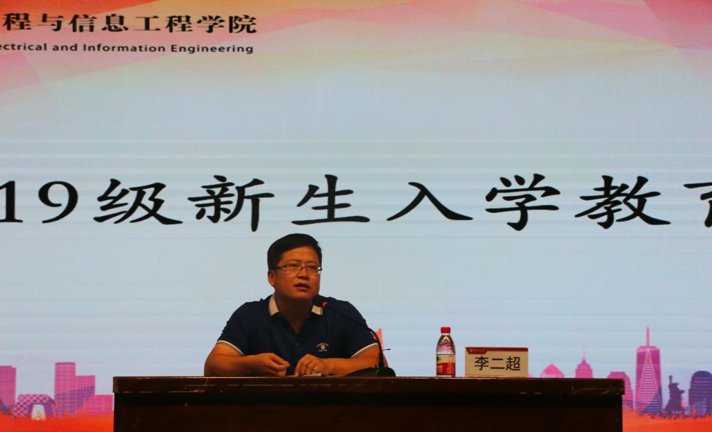 入学教育部分,李二超副院长就学籍管理、考试挂科、诚信教育、学分制度等几个方面为2019级新生做了具体介绍。朱毓杰副书记就学生工作向新生做学生管理专题教育。