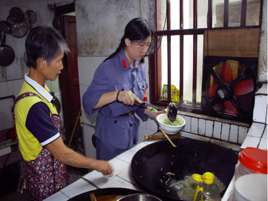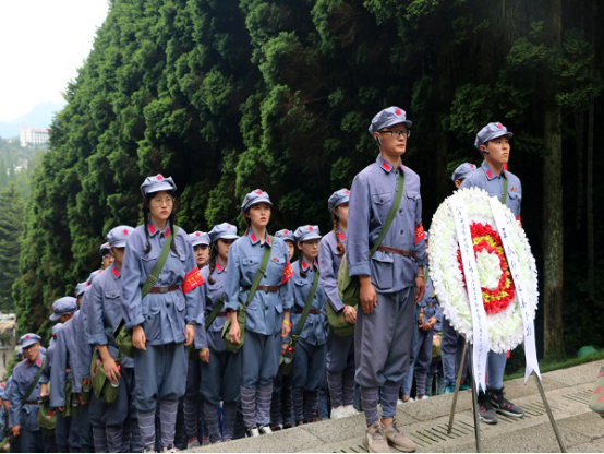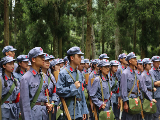 在实践教学中,实践队员身着红军军服,手握钢枪,整齐地踏上当年红军志士一步一个脚印开拓出来的革命道路。在井冈山革命烈士之墓、井冈山革命烈士陵园,大家肃穆而立、敬献花圈,共同以入团誓词向革命烈士致以崇高敬意,宣告当代青年为共产主义事业奋斗终生的信仰与坚定信念;在八角楼、朱毛旧居前,同学们回忆峥嵘岁月,感受革命历史风采;马源村里,同学们干农活访民情,自做红军餐,体会军民鱼水一家情的深情厚谊;黄洋界、挑粮小道上,体验战火硝烟、炮声隆隆的年代,革命先辈艰苦卓绝、坚持斗争的不易。