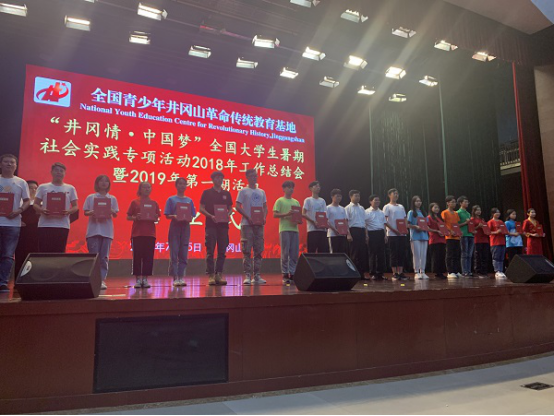 7月25日晚,来自全国各地19所高校的两百余名实践队员共同参加了实践活动第一期的结业仪式。团中央青年发展部杨松部长和全国青少年井冈山革命传统教育基地中心党委书记、主任王学坤等领导为19所高校学员代表颁发了结业证书。杨松部长勉励广大实践队员,要深入学习党史,深入学习习近平新时代中国特色社会主义思想,传承红色基因,坚定理想信念,“让信仰点亮人生”。