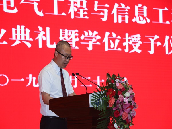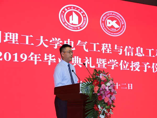 学校党委常委、副校长袁幼新代表学校全体教师向圆满完成学业、即将离开母校的全体毕业生表示热烈的祝贺并寄予厚望,希望大家坚守初心、志存高远。在坚守梦想中知行合一,把个人的梦想融入到中华民族伟大复兴的中国梦之中,脚踏实地,主动作为,在平凡的工作和平凡的岗位成就伟大的事业;希望大家律己修德,勇于担当。继续发扬“艰苦奋斗、自强不息、求真务实、开拓创新”的红柳精神,做践行社会主义核心价值观的楷模,以强烈的责任感和使命感谱写时代振奋昂扬的主旋律;希望大家心怀感恩,力求奋进。感恩父母家人、感恩老师学长、感恩四年同窗。在新的人生起点上,把“奋进求是”的精神装在心中,时刻学习,积少成多,不断进步;希望大家与母校同心,携手共进。2019年,是五四运动的一百年,是小黄书