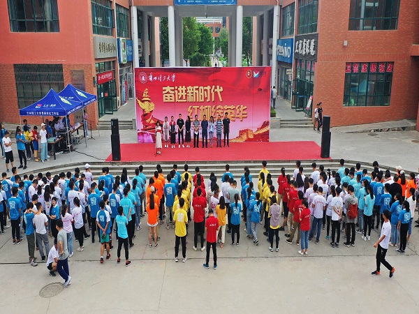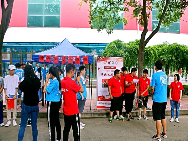 在彭家坪校区红柳广场联合主办“奋进新时代,红柳绽英华”纪念中华人民共和国成立七十周年暨迎百年校庆主题活动。学校学生处副处长、易班发展中心常务副主任马栋林,小黄书