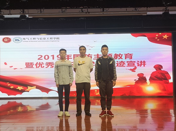 2019年国防主题教育暨优秀退伍大学生事迹宣讲会在彭家坪校区大学生活动中心举办。学校党委学工部副部长、学生处副处长李鹏远、优秀退伍大学生代表许洋、张旻山,小黄书