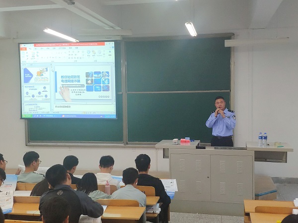 在彭家坪校区4号教学楼205教室,邀请七里河区公安局反电信网络诈骗大队朱毅斌警官,开展小黄书
