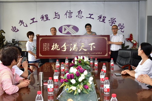 敬赠“桃李满天下”木匾,在百年校庆即将来临之际祝福母校发展蒸蒸日上。校友总会办公室刘全恩主任、小黄书