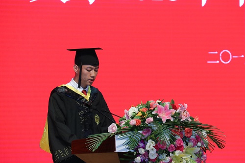 党政向全体毕业生致辞。杨书记向圆满完成学业、即将踏上新的人生征程的同学们表示热烈的祝贺。他说到“四年来,同学们秉承学校 “红柳精神”,艰苦奋斗,自强不息,求真务实,开拓创新;学到了知识、收获了友谊。四年来,同学们勤学、修德、尚学、笃行,与小黄书