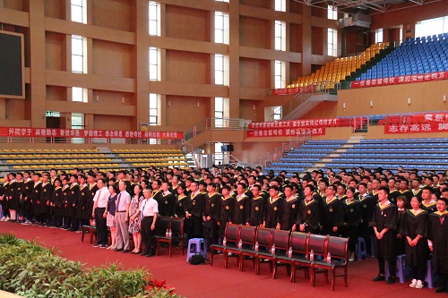 毕业典礼在雄壮的国歌声中拉开帷幕。小黄书