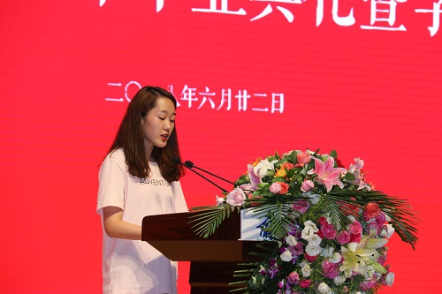 副院长包广清教授宣读了学校了《关于表彰2018届优秀毕业生的决定》;副院长刘微容教授宣读了《关于表彰2018届考研先进个人的决定》;院长助理李二超副教授宣读了《关于在毕业生中确定班级校友联络员的决定》。随后,与会领导和嘉宾向优秀毕业生代表、考研先进个人代表和校友联络员颁发了荣誉证书并赠送了毕业纪念徽章。仪式上,2018届毕业生牟淼同学代表全体毕业生做了发言,表达了他们对母校的由衷感激和不舍之情,离别之际为母校送上了最真挚的祝福。号召全体毕业生带着对社会的责任、对家庭的责任,去扬帆、逐梦、践行,努力去实现自我价值,为国家的发展和富强以及中华民族的伟大复兴做出自己应有的贡献;发扬红柳精神,在社会的各行各业都尽情施展我们的才华。2015级祖明霞同学代表全体在校学生对2018届毕业生表达了祝贺并送上了祝福。