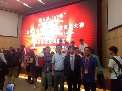 由教育部高等学校自动化专业教学指导委员会主办的第五届“AB杯”全国大学生自动化系统应用大赛总决赛日前在上海交通大学落幕。作为中国自动化行业最高级别的高校赛事之一,本届大赛吸引了来自上海交通大学、东北大学、哈尔冰工业大学、北京航空航天大学及美国威斯康星大学等国内外高校参加,经过初赛有62所高校进入最后的总决赛。我校小黄书