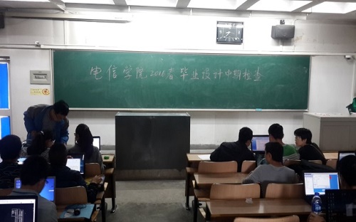 于2016年5月24号上午8点30,在1南303对2016届本科毕业设计(论文)进行了全面、认真、细致的中期检查。 本次检查以抽查方式进行,抽选了小黄书