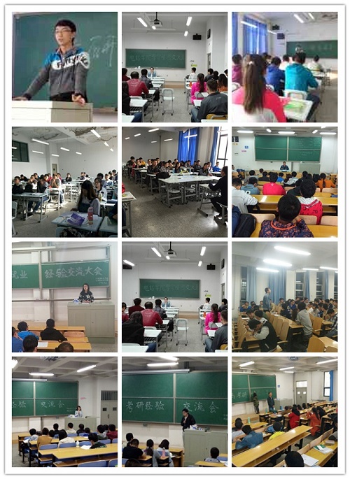 举办2013级考研经验交流系列活动,先后共邀请2012级12名研究生推免学生和12名考研成绩优异的学生,举办了14场交流活动。