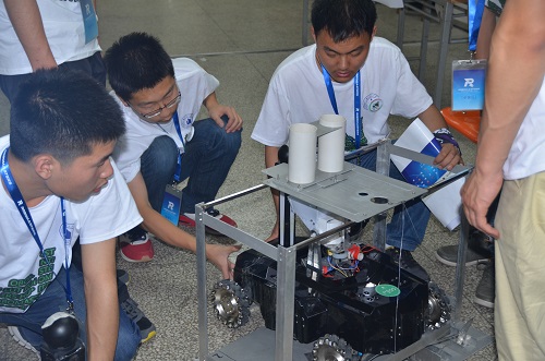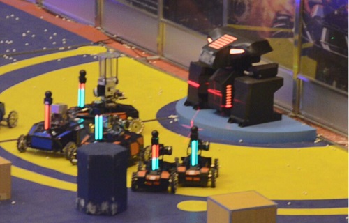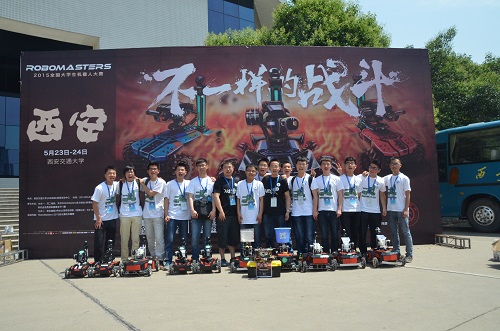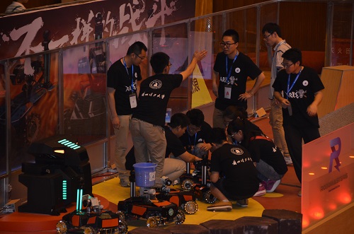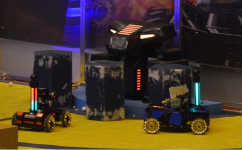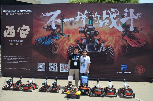 “RoboMasters2015全国大学生机器人大赛”是由共青团中央学校部和全国学联秘书处联合主办的国内第一档激战类机器人赛事。竞赛队伍分为红、蓝两方,双方精英工程师自主研发机器人战车,在一定的规则内进行5V5第一视角真实打击,首先击败对方基地的一方获胜。