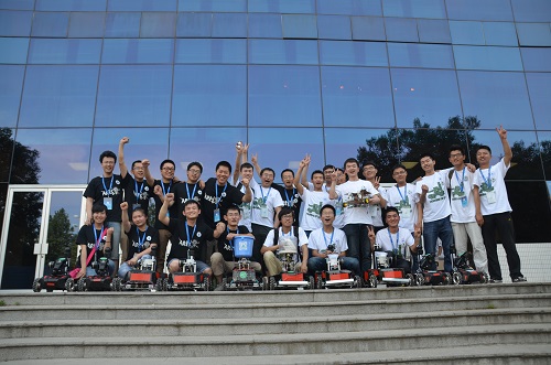 的红柳精神。决战的号角刚刚吹响,两方就急速向对方防区挺近,红柳猎人队的两辆射手车带伤上阵突然卡在迷宫地区,受到速加网笃行战队的猛烈攻击。就在此时,红柳猎人队的步兵看着队友处在枪林弹雨中,并没有去救自己的队友,因为他们明白队友正在用自己的战车吸引对方火力耗尽对方的子弹车,给剩下的队友赢得冲向对方基地的宝贵时机,最后对方耗尽了子弹无法对我方基地进行有效攻击,而我方成功进入对方基地并进行攻击,第一局因我方基地剩余血量多而险胜。这一局充分验证了红柳猎人队的团队合作能力,经过这半年来的磨合大家已经成为了一个有机的整体。第二局红柳猎人队的一辆射手车一个驱动轮销钉被拧断,虽然整车底盘采用全时四轮驱动,并加入了容错控制,机器人仍然可以行动,但已经失去了原来的自如很快就被对手打掉了,形成了4打3的局势,面对东道主强大的攻击,红柳猎人输了第二局。决胜局中受伤的射手留在最后保护基地,两辆步兵车带着大家的希望冲向了对方基地,但最后因为敌众我寡,两辆步兵车被对方打掉,面对对手洪水般的攻势,受伤的射手车和炮兵车只能尽量用自己的身体挡住对方的子弹,但最终的败局以无法挽回,红柳猎人队因败一局1:2获得了西北赛区亚军。在三四名的较量中机电一队同样败给了东道主获得了赛区第四名,北赛区的淘汰赛就此落下帷幕。我校的红柳猎人和机电一队将在剩下的两个月的时间继续改进战车,争取在7月份的深圳总决赛中还能一决高下。