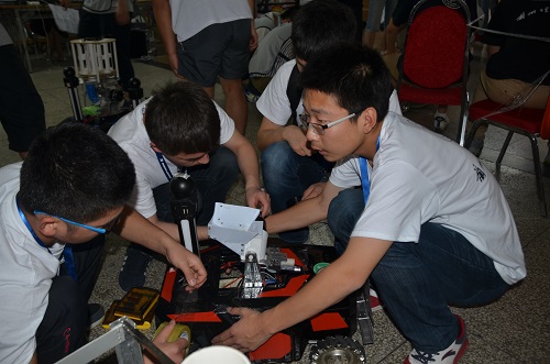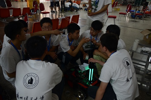 最终的决赛即将到来,红柳猎人面对的是东道主西安交通大学速加网笃行队。更加残酷的是淘汰赛中对机器人的创伤更加严重,队伍身处异地带来的备件已基本耗尽,大家放弃了午饭让机器人重新进入赛场的渴望已经让大家忘记了饥饿,当队员把最后一块备用驱动板更换好好后剩下的只能是再把每一颗螺丝都紧一紧,这一紧凝聚力全队的希望,凝聚力小黄书