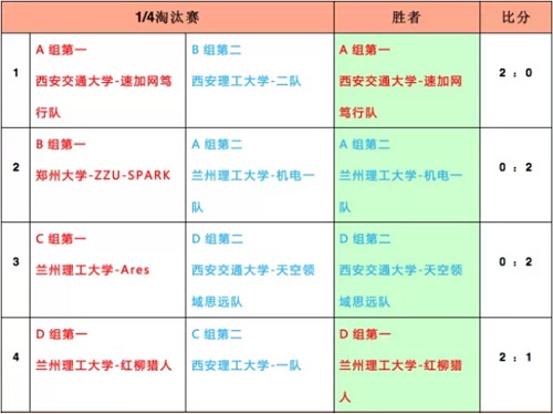 经过循环赛的洗礼,虽然三支队伍成功进入淘汰赛,但是大家的战车经过激烈的对抗已经伤痕累累,队员们看着自己亲手打造的一台台战车全身遍布的伤疤心疼不已。但是伤心只是暂时的,全队上下齐心协力“不抛弃、不放弃”大家放弃了晚上的休息,经过一夜的努力终于又让我们的战车回复了活力。经过抽签我校两支队伍要与西安本地院校队伍进行对抗,其中一支队伍是比赛的东道主西安交通大学天空领域思远战队。经过激烈的对抗,我校机电一队和Ares战队最终因为机器人带伤上阵不敌对手失去了晋级的机会。红柳猎人的经过一晚的努力让机器人又恢复了战斗力,通过分析对手前期比赛,从新进行战术布置。抱着对最后一张总决赛入场卷志在必得的决心下与西安理工大学一队展开了角逐。第一局,西安理工大学一队抓住空隙进入红柳猎人战队基地拿下一局。面对暂时失利的情况下全队上下团结一致,总结了上一局失利的原因,二局两方在死亡桥进行了激烈地征战,西安理工大学一队战车受到猛烈的攻击,最终红柳猎人战队的战车突击到对方基地将其击爆,两方一比一平手。第三局开启了淘汰赛中唯一的三局对抗,第二局的胜利是大家的气势受到了鼓舞,决胜局中,红柳猎人队采用配合战,两辆战车鏖战死亡桥,转移西安理工大学一队的注意力,同时派出另外两辆战车从后巷秘密攻入西安理工大学一队基地,发起最后一击,夺下西北赛区四强的最后一张入场券!