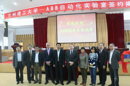 -ABB自动化实验室签约揭牌仪式在我校逸夫馆科技二楼报告厅隆重举行。校党委书记李贵富与ABB集团机械控制及自动化产品管理中心运动控制及PLC自动化亚洲区销售经理兼传动与控制本地业务单元机械控制及自动化产品管理中心经理James Large先生共同为实验室揭牌。