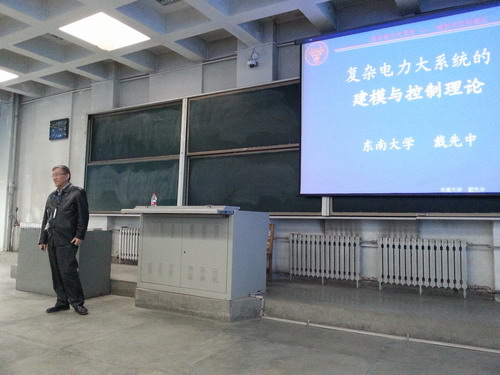 教职工以及相关方向的研究生共100余人参加了报告会。 戴先中教授和费树岷教授分别做了“复杂电力系统建模与控制”和“基于图像的行为检测”的主题报告。戴先中教授主要针对自己以及团队的研究方向,以目前电力系统中的一些难点问题为引,介绍了复杂电力系统建模与控制的研究成果以及未来的发展方向。费树岷教授以自己团队近期所做图像处理方面的研究成果,介绍了基于图像的行为检测的背景、意义和发展前景、介绍了行为检测中的一些关键技术和所开展的工作。 会后,两位教授还详细解答了现场老师和同学的提问。