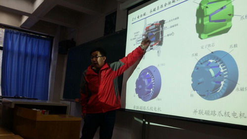 魏祥林老师正在做“混合励磁BSG电机设计的关键技术”主题报告