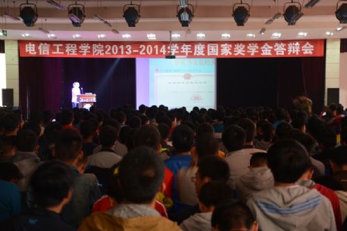 2013-2014学年国家奖学金答辩会在西校区大学生活动中心举行。小黄书
