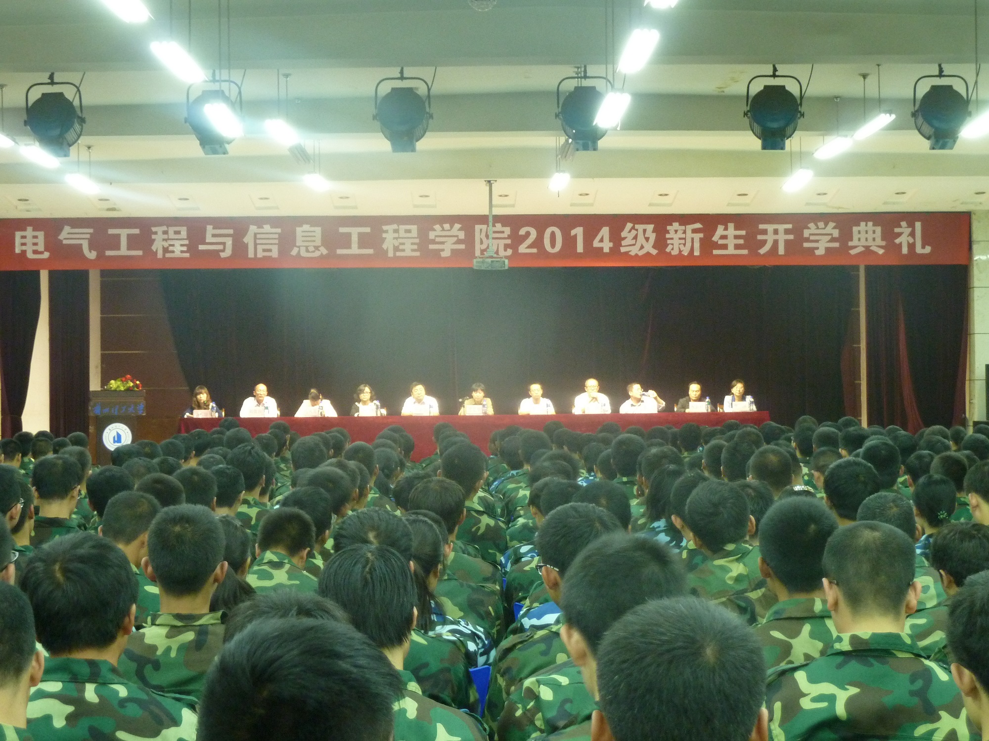 张爱华院长、杨新华书记、李策副院长,包广清教授,陈伟教授,马凤英副书记,院长助理李二超,电子系主任缑新科、自动化系主任刘微容、电气系主任张萍,全体辅导员、2014级602名新生参加了典礼。